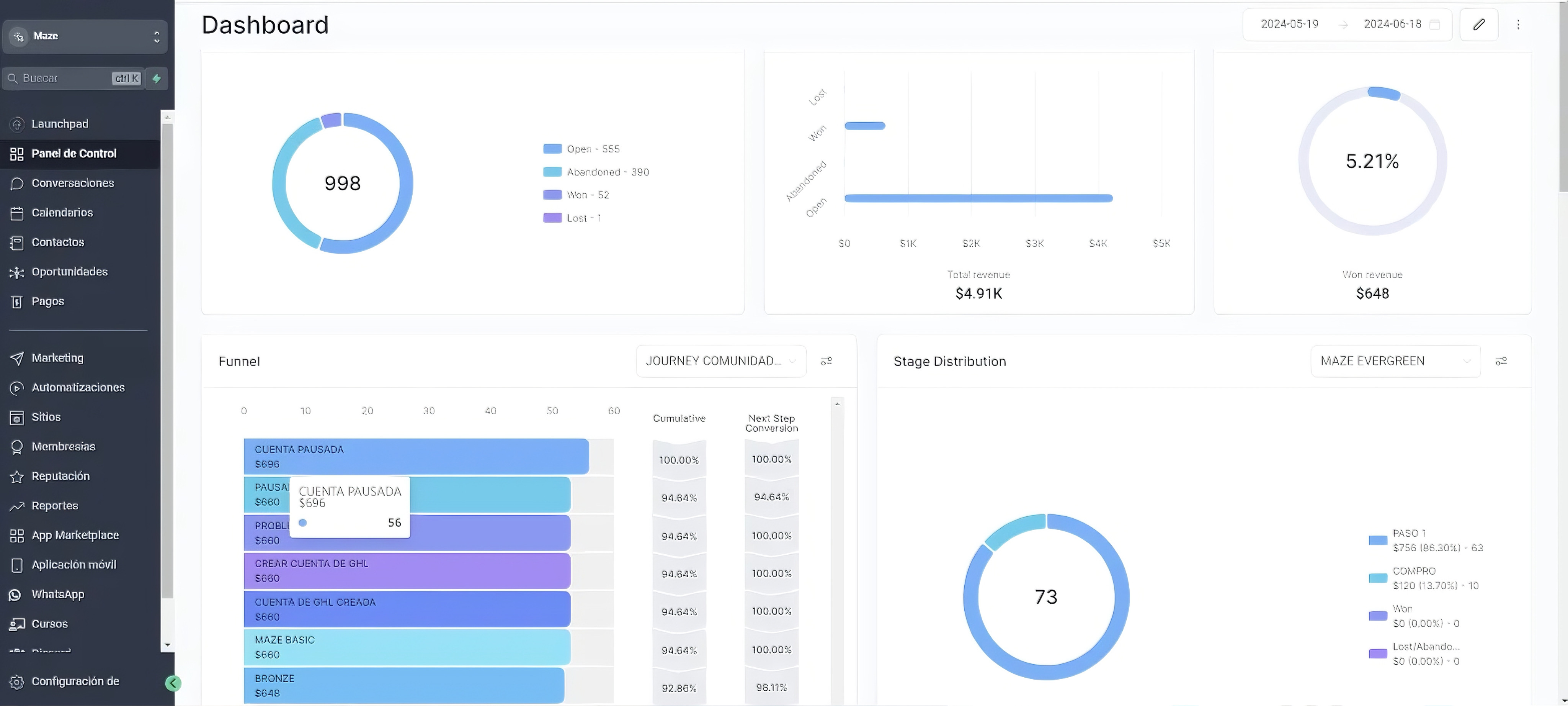• CRM con Oportunidades y Pipelines Ilimitados